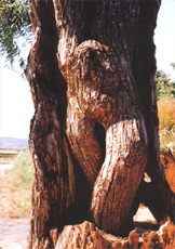【中】 人們常說胸有成竹,但也只是聽說,真正見過的人很少。在福建屏南嶺頭村村北的北坡上,長著一株古老的紅豆杉樹,這也沒有什么稀奇,有趣的是一叢毛竹正好從這棵樹的胸膛中長了出來,形成了“胸有成竹”的趣景。這株樹至少有幾百歲的高齡,樹干早已成為空洞,南半部已經(jīng)開裂,毛竹鉆了這 個空子,從地下冒出,竄過樹洞挺然而出,這侏樹至今還滿樹青枝。 無葉樹您見過嗎?在四川石柱土家族自治縣挨河咀鄉(xiāng)紅旗村第二村民小組,發(fā)現(xiàn)一棵不長樹葉、不開花結(jié)果的前年古樹——馬鱗光樹。這棵樹高二十三米,樹圍三點二米,覆蓋地面近五百平方米,樹身光滑無殼,有各種花紋,呈棕黃色。據(jù)有關(guān)專家鑒定,是世界上較為稀有的樹種。有關(guān)部門現(xiàn)已采取嚴格的保護措施。 在我國的黑龍江和吉林省的交界處,生長著一種能產(chǎn)鹽的樹,叫木鹽樹。這種稀有的樹種高兩丈之多,每到夏季,木鹽樹的樹干上就凝結(jié)起一層雪花似的鹽霜,刮下來可當上等精鹽食用。每到泌鹽的季節(jié),當?shù)鼐用癖銧幭喙稳?,以備食用。這種木鹽樹引起了世界經(jīng)濟學(xué)家們的極大興趣,如推廣種植,對于很多內(nèi)陸缺鹽的國家,可謂是寶中之寶。